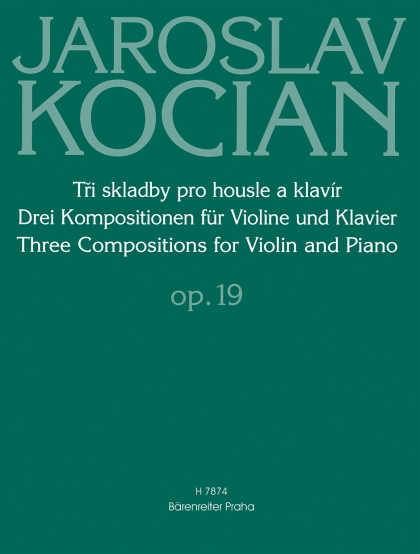 Předkládaná edice přináší první kompletní tištěné vydání Třech skladeb pro housle a klavír, op. 19, z nichž tiskem vyšla dosud pouze Jarní píseň a Ukolébavka, a to v New Yorku v roce 1911. Jejich autor Jaroslav Kocian (1883-1950), světově proslulý houslový virtuos a významný pedagog, jenž vychoval celou generaci českých houslistů, většinu svých skladeb komponoval pro housle. Díla se díky svému brilantnímu charakteru velmi dobře hodí jako přídavky po koncertních vystoupeních. Toto vydání vzniklo na základě spolupráce nakladatelství Editio Bärenreiter Praha s Mezinárodní houslovou soutěží Jaroslava Kociana v Ústí nad Orlicí, na jejímž 45. ročníku v roce 2003 zazní Ukolébavka jako povinná skladba v I. kategorii.